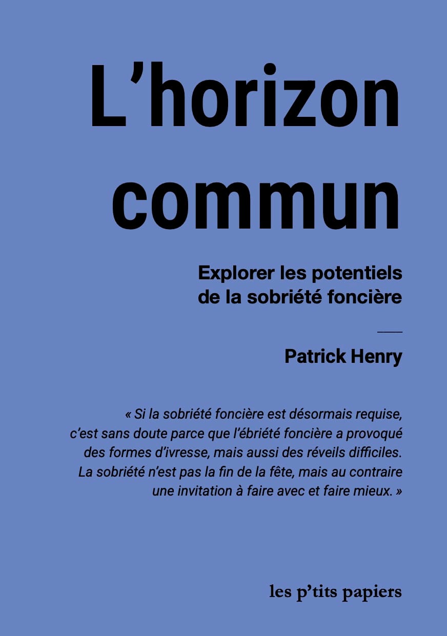L’horizon commun, explorer les potentiels de la sobriété foncière peut-être commandé directement en ligne et prochainement dans votre librairie. La version numérique est accessible librement dans la bibliothèque (numérique) de dixit.net pour les abonnés de la newsletter de dixit.net. Et l’abonnement est gratuit ;)